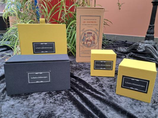 Cette malle vous permet de découvrir les origines du cinéma à travers plusieurs jeux optiques.
