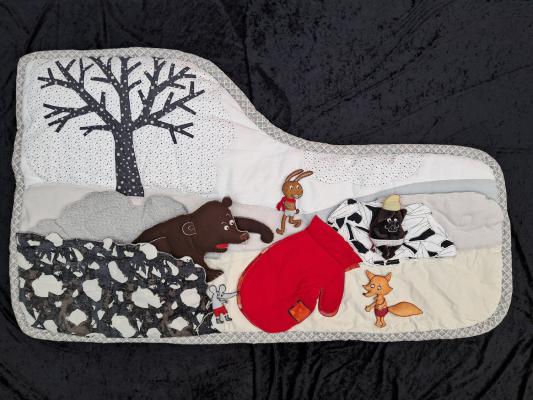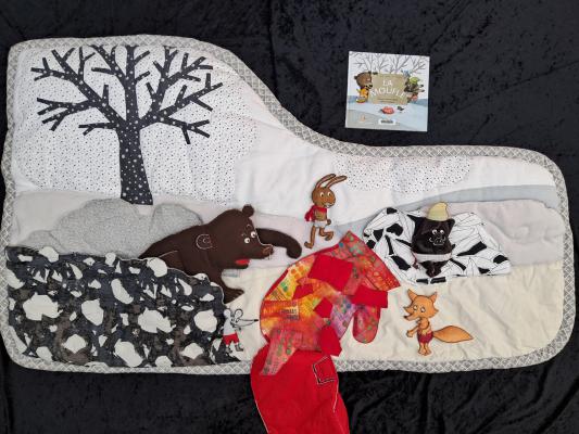 Un raconte-tapis adapté de l’album jeunesse Ours qui lit d’Eric Pintus et de Martine Bourre paru aux éditions Didier Jeunesse, et réalisé par les bibliothèques de Quemperven, La Roche Derrien, Ploulec’h et Lannion dans le cadre d’une formation financée par la Bibliothèque des Côtes-d’Armor.