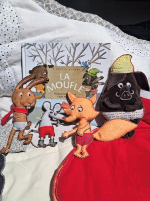 Un conte d'origine russe, conté par Florence Desnouveaux et illustré par Cécile Hudrisier.C'est l'histoire d'une moufle rouge déposée par le vent sur la neige du chemin. Souris vient à passer par là. "Quelle aubaine ! Une maison de laine ! Y'a quelqu'un ?".