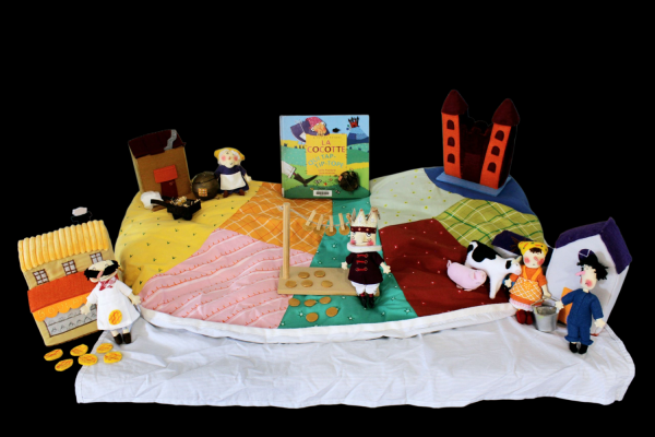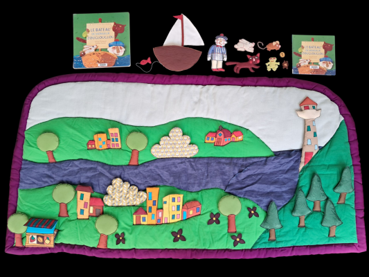 - 1 raconte-tapis accompagné d'accessoires et de personnages en tissu.